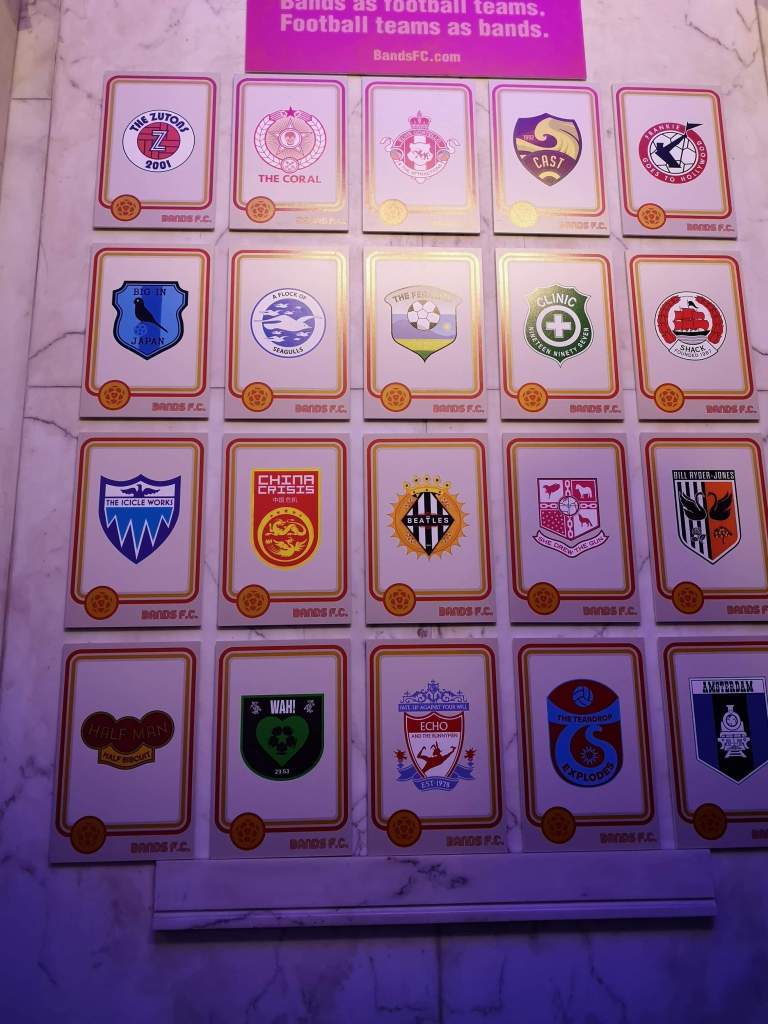 Music and football and art have always gone hand-in-hand-in-hand on Merseyside. The stories are plentiful. There’s the apocryphal story of The Teardrop Explodes early 80’s winter tour dates being built around Everton’s away fixture list. There’s the true story of Wirral post-punk icons Half Man Half Biscuit swerving an appearance on the influential TV show The Tube because it’s Friday evening slot clashed with a Tranmere Rovers home game. There’s even a rumour that members of Half Man Half Biscuit still get together on a regular basis with members of The Farm for a bit of 5-a-side action. Based on such evidence, it makes perfect sense for Bands F.C. and local design company Dorothy, to hold an exhibition of their works at Liverpool’s British Music Experience Museum.