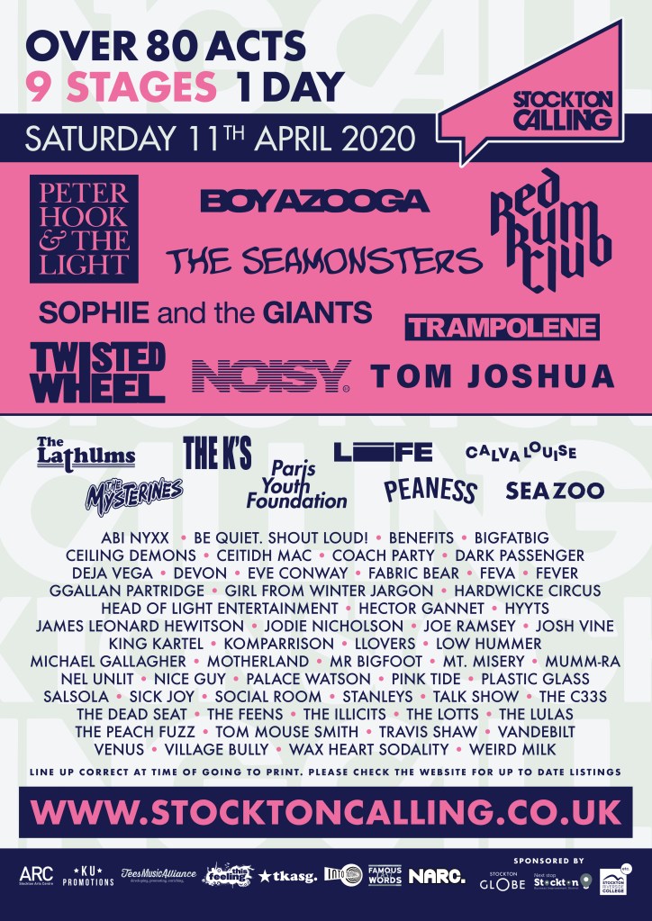 Stockton Calling – Teesside’s biggest and best multi-venue music festival – returns to Stockton on Saturday 11 April 2020. Each year, venues across the town host stellar headliners, some of the most exciting national emerging artists, alongside the very best of regional acts.
