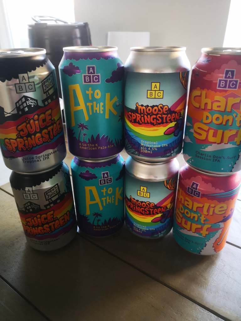 Four beers. Three from the core range, Charlie Don’t Surf, A to the K and Juice Springsteen and the amped up, lactose heavy version of the last beer Moose Springsteen.