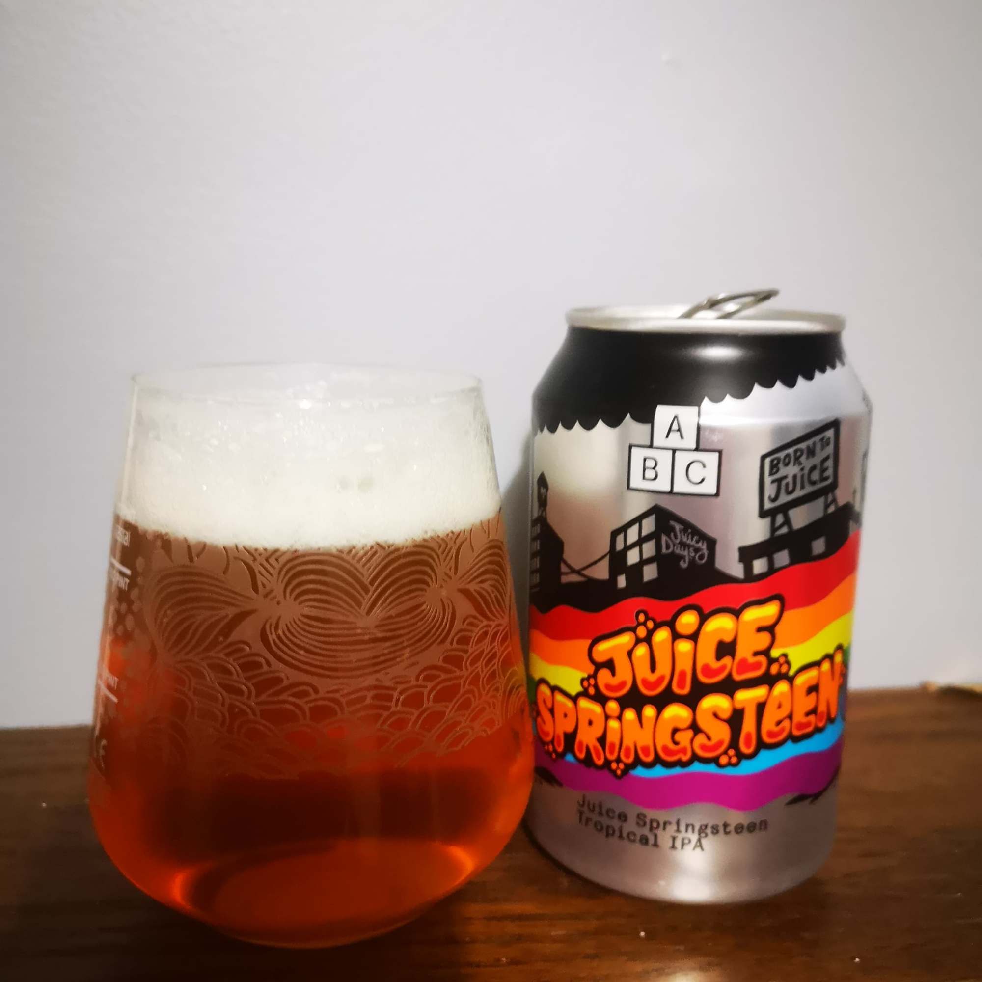 The last two beers we compared like for like. Two beers cut from similar cloths, the flagship Juice Springsteen taking on the mighty Moose Springsteen. The first, a juicy tropical IPA with bags of pineapple, mango, passion fruit, mandarin and guava, this beer is summer in a can. With an even golden pour and a thick white head; the best way to summarise this beer, is alcoholic mango Rubicon, and if that doesn’t make your mouth water then I don’t know what will!