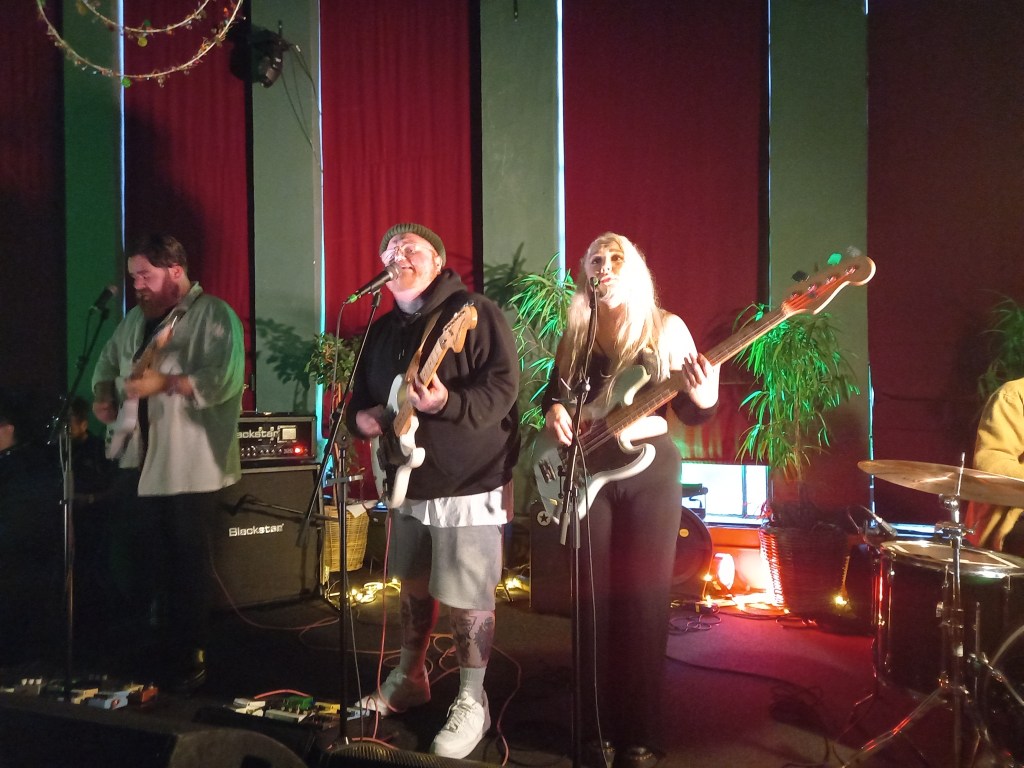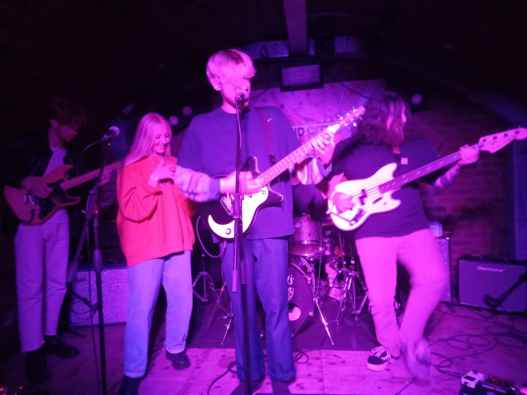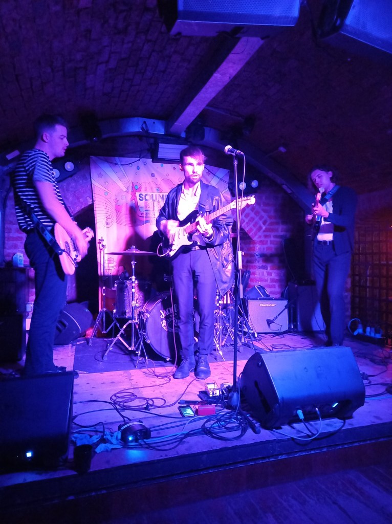 I felt slightly disappointed for the The Clockworks. Late Saturday afternoon at The Shipping Forecast with its low ceilings and close crowd would have been an ideal slot on which to showcase their talents. The 10 O’clock slot at EBGBS had them up against local favourites Red Rum Club at Grand Central Hall, and compatriots The Murder Capital up the road at The Arts Club. Factor in Fontaines DC playing a rearranged gig over at the O2 Academy and perhaps it was understandable why the cellar of EBGBS was sparsely occupied. I wasn’t disappointed by the performance of The Clockworks. Despite the small crowd and a minor amp problem for guitarist Sean Connolly, The Clockworks put on a quality show of post punk angst with a set of songs that put me in mind of Gang of Four – prickly attitude and punchy songs about everyday life – Bills and Pills, Stranded at Stansted, Can I Speak to A Manager and finishing with The Future is Not What it Was. Saturday for me was done. My musical appetite sated for the evening.