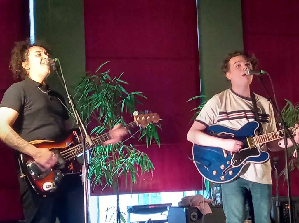 Sunday started loudly. Very loudly. You could hear Glasgow trio Dogtooth from well down Bold Street, long before you entered Leaf. Once inside you got to see a band that looked like Ivy Ivy Ivy era Primal Scream, and sounded like an amalgam of The Clash and Therapy? During the first full song I witnessed, lead singer/guitarist John Hewitson breaks a guitar string, continues, and finishes the song on his knees, running a beer bottle up and down the fret board of his guitar. That’s how you start a Sunday.