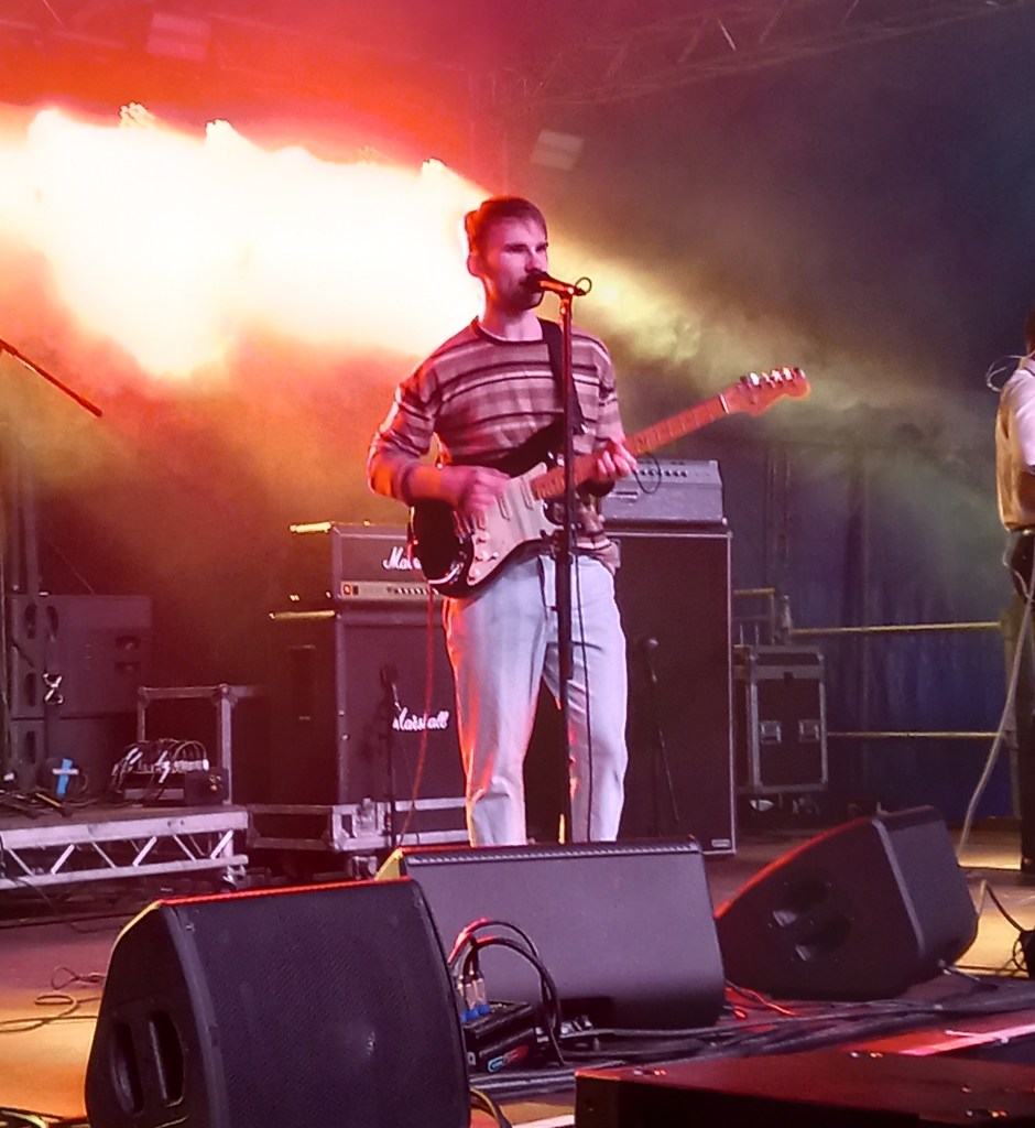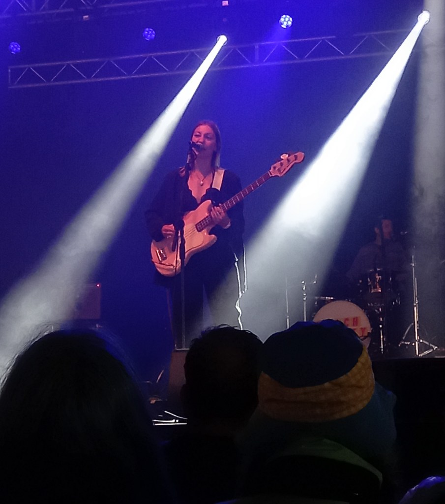 I was on much firmer ground with Coach Party in the massive T’ Other Stage tent. I was super-impressed by Jess, Steph, Joe and Guy – the ‘other band from the Isle of Wight’ when I recently saw them and was keen to have my initial impressions reinforced. And bolstered they were too. T’ Other Stage is the second stage at Tramlines and is a big place (it would be the venue for Sigrid and Self Esteem) and there was a sizable, expectant crowd in for the band, highlighting their growing reputation. Coach Party are an indie guitar band, with grunge influences, who have pop sensibilities. The tunes had proper riffs and join in chorus’ best exemplified by Everybody Hates Me, and the pounding show stopper Cant’ Talk, Won’t . My only disappointment was that they didn’t play Crying Makes Me Tired, just because it has one of the best opening lines – ‘You’re a prick and I hate you’. Get aboard the Coach Party bus while you can. It’s going to fill up soon.