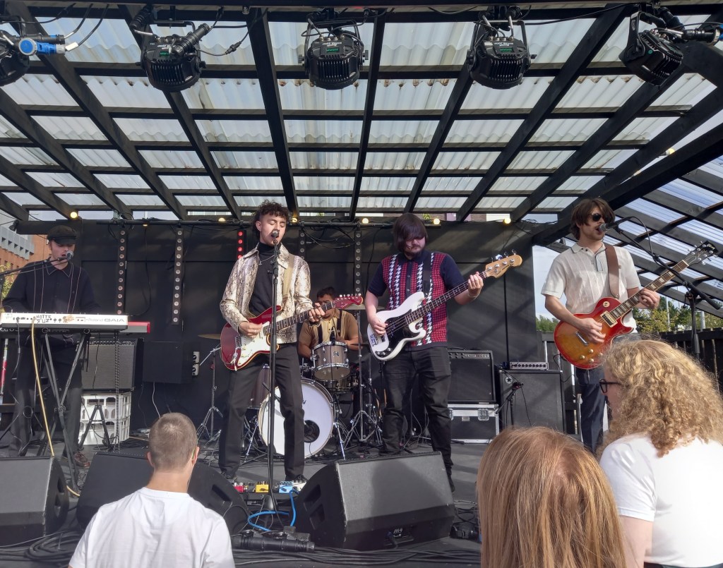 Opening artists of the day were Liverpool three piece Dovegate. The band take their name from a prison in Staffordshire (but aren’t exactly sure why?). Their style appeared to morph from song to song. Contagious Lies had the jaunty swagger of The Coral. Time We Lost had a simple melodic naivety to it reminiscent of BMX Bandits. Their most overtly political tune Brand New Day had the angsty energy of The Jam – they were even lined up on stage in the correct order – Weller, Buckler, Foxton. They finished a set that kept you on your toes with their only single release to date If We Run Out Of Love.