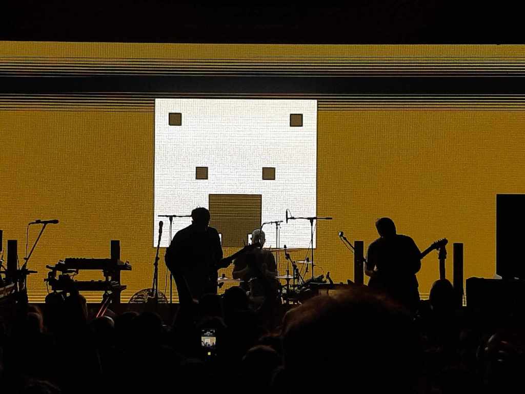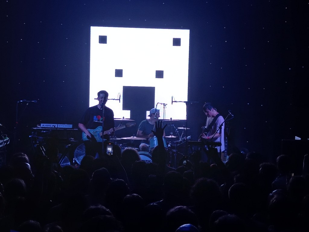 The lower section of the Arts Club Theatre never stopped bouncing as The Wombats progressed energetically through their prodigious back catalogue. Playing in front of a backdrop of 16-bit graphics depicting hearts, lemons, knives, and a rudimentary wombat consisting of of one large white square and six smaller black squares the band blazed through Lemon To A Knife Fight, Kill the Director, Pink Lemonade, and This Car Drives All by Itself.