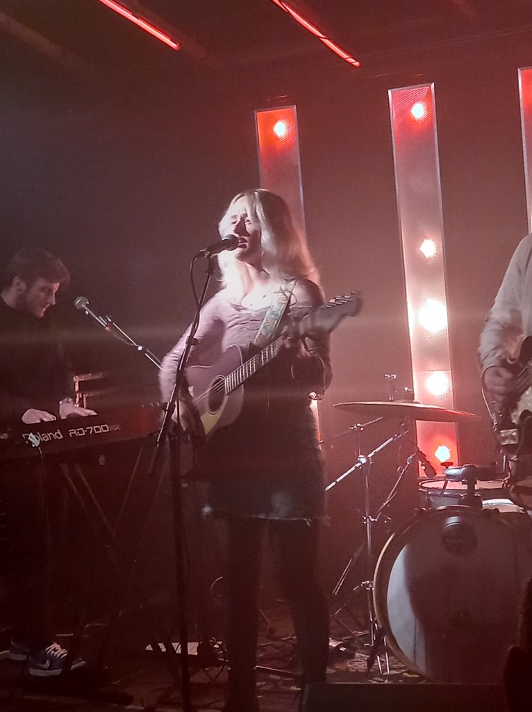 First artist of the evening was American singer HAIVEN, who was eventually backed by a five-piece band, her tardy drummer arriving halfway through the second song of her set. Originally from Michigan, USA, HAIVEN, along with others in her band is now studying at Liverpool Institute of Performing Arts (LIPA) – alma mater to such notables as The Wombats, Circa Waves and Holly Humberstone. Her sound had an arty, East Coast, power-pop feel to it. Her set started brightly with Bella Donna and Meadow Beach Park (It is a real park – on Long Island, NY), and kicked into gear with the lively break-up/revenge song H.O.T..