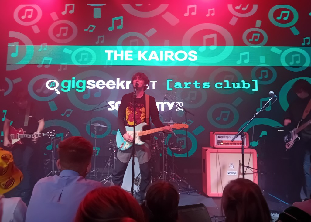 Less theatrically dressed, but putting in an equally powerful performance were Liverpool quartet The Kairos. In a similar way to The Sway earlier in the day, The Kairos looked completely at home in front of a crowded Arts Club Theatre. Indeed, the only time there wasn’t a smile on singer/guitarist Tom Dempsey’s face was when he was singing. Unlike their compatriots, The Kairos have a much a more energetic, heavier indie-rock sound built on the solid foundations laid down by Sam Bradley’s powerful drumming and Owen Forrester’s precision bass playing.