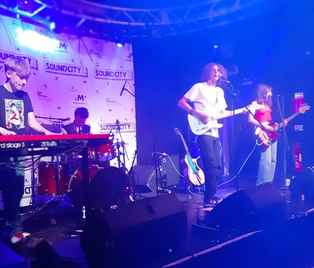 Spanish Caravan was the wristband collection-point for Sound City 2024, and my day started watching local, young, singer-songwriter Harry McKenny. I say watching, so packed was the venue that I was actually stood at the venue’s doorway, peering at him in the distance. He played a promising set consisting of his own material and a very good acoustic cover of Praise You. He does not yet have any material out there for streaming, but will soon be heading to Liverpool’s Motor Museum Studio to rectify that. Watch this space.